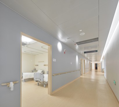 The interior is rational and is designed with clear circulation and functional grid modules. The internal orthogonal modular design allows various medical functions to be easily replaced and developed, making it flexible and able to adapt to future treatments. Its material selection plays intentionally with a mix of contrasts, bringing a consistent warm color with the wood, we reinforce the Hong’ai ‘spread love’ cozy feeling.