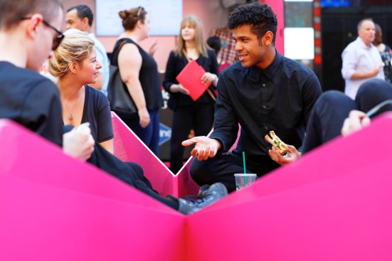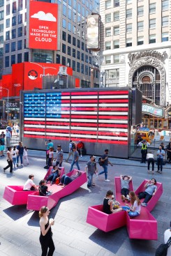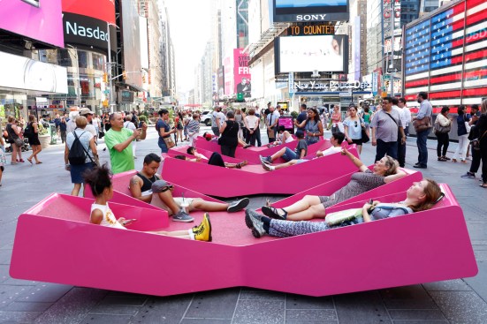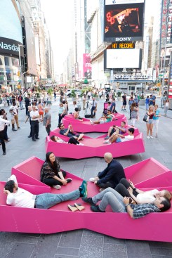 Kevin Davey, Principal Creative Strategies of UAP North America, said, “Jürgen’s amazing design required the fabrication of comfortable, precise elements, that people could lay in, while being suitable for the Times Square environment. Durability and beauty go hand in hand and cannot be compromised. UAP (Urban Art Projects) is excited and grateful to have worked with Jürgen, his team, and all at Times Square.”