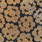The logs of the canopy are assembled in circular bundles bore by a modular hexagonal structure in weathering steel, lying on top of seven steel columns. The upper surface of the canopy is carved sinuously in order to create a rounded topography that blends in the surrounding hills. At the same time massive and light, the roof is inspired by the “toguna”, the traditional most sacred space in every Dogon village, a wooden and straw shelter designed in order to protect from the sun but at the same time to allow the ventilation of the shaded space underneath.