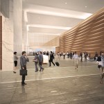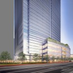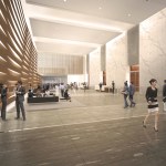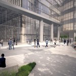The 240-meter tower’s façade is gently curved to subtly contrast with the surrounding buildings. At the Northeast corner, the tower engages the ground to emphasize its verticality and to offer a clear identity for the main entry. The exterior form of the elementary school is expressed with an articulated louvered façade that provides shading and allows for landscaped classroom balconies.