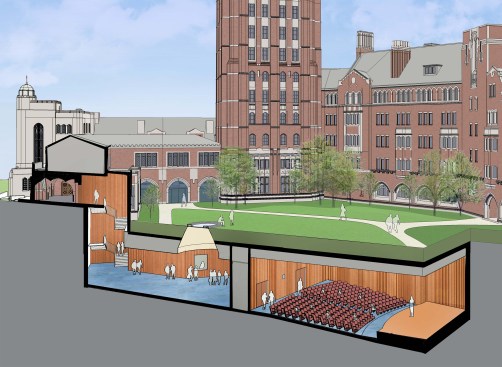 ABA is designing Yale’s new Center for the Humanities, centralizing numerous academic departments in one historic location and offering greater opportunities for collaborative facilities. The existing 195,000 gsf Collegiate Gothic complex is organized around two landscaped courtyards, and currently includes housing, faculty offices, classrooms, and seminar rooms. ABA’s design reconsiders entry, orientation and wayfinding systems; classrooms and program areas; faculty offices; and administrative services. A new 13,000-sf space for a 280-seat Lecture Hall and 100-seat Film Screening Room is sited below the redesigned courtyard. The project renews and reconfigures teaching and social settings; repurposes historic interiors; and reconsiders former residential spaces as clusters for faculty offices, collaborative workplace, and study.