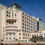 Nevertheless, the expansive mall atriums served as excellent lobby spaces with fantastic visual connections across most departments. The two available entrances were tactfully re-organized for the visitors and emergency. The massive floor plate allowed the entire out-patient department, radiology, emergency, and the daycare facilities to set-in making the patient and visitor navigation much easier. Every department of the ground floor transits into another through a multi-height space, further enhancing the patient experience. Moving up, there are designated elevator cores separate for hospital staff, visitor’s and the service staff to augment explicit vertical movement.
