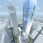 This approximately 3,293,757 sf (306,000 sm) mixed-use complex features parallelogram plan geometry with rounded corners, which serves to distinguish the project’s two elegant 984-foot (301-meter) tall towers from the adjacent rectilinear towers seen in the Master Plan. In a nod to the literal meaning of Yinchuan, the towers are linked by a “silver river,” a podium building with a sinuous form. Rotating the towers and placing them in relation to each other creates, from two very similar towers, a sculptural composition of one form, ever evolving and changing from various vantage points. The project combines office, hotel, office executive mansions and boutique retail spaces with ample auto and bicycle parking provided below grade. Once completed, the towers will be the tallest in the NW region of China.
