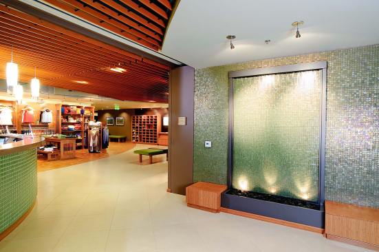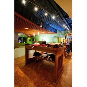 The 9,500 SF upscale facility includes yoga studios, locker rooms, retail space and a membership sales area. Centrally located within the Valencia Bridgeport shopping center this studio was designed with a focus on sustainability and the use of eco-friendly materials. The studio feature bamboo floors, low VOC paint, and radiant floor heating. The use of floor to ceiling windows allows for natural daylighting within the yoga studios and boutique. This studio is one of several designs by Alexander + Hibbs AIA, Inc.