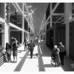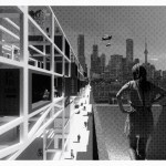 My proposal for you is to build over Yonge Street a long, mid-rise (~6-story) mega space-frame, whose upper half (3-story) is to be occupied by commercial and residential units, whose lower half (3-story) is to be hollowed (except for the access and structural “legs”) for the existing vehicle and pedestrian traffic, and at whose “belt” the frame is to be floored to accommodate elevated walkways for the public and the residents. Its apparently huge undertaking will adapt to various circumstances, by using the modular unit system and phased construction. Unlike a typical tower, which needs to be built in one take, the proposed design is to only provide the mega space-frame, access shafts, and services. The prefabricated modular unit, such as a shipping container, is to be inserted into the space-frame post-construction based on the unifying grid system. The grid system will be determined by: 1) the design of Yonge Street, the width of which is 18m (four traffic lanes of 3m width + two pedestrian lanes of 3+m width), and the length of which is 2.7km from Front Street to Bloor Street, 18km to Steeles Avenue, and 56km in its entirety; 2) the major intersections of Yonge Street, which, also corresponding with TTC subway stations, are the locations for the access and structural shafts; 3) the dimension of the standard shipping container (L 6.0m / 12.0m x W 2.5m x H 3.0m). In its full establishment, the maximum of 134,400 units can be provided, well beyond the figure of 116,000+ individuals and families in need of housing in the city.