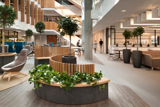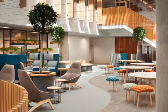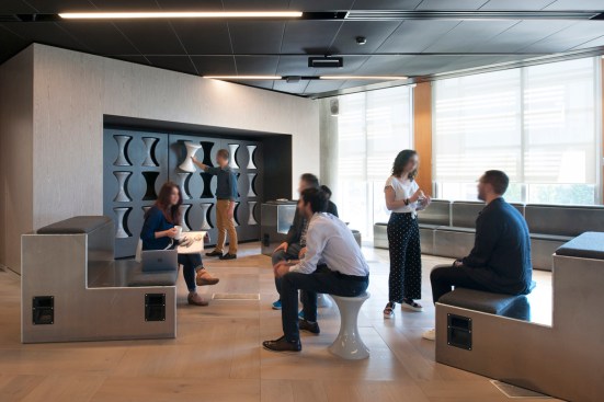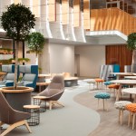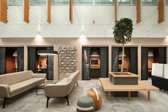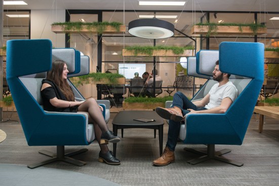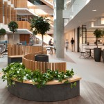 Occupying the former BBC Media Works building at White City Place, the tech centre has transformed the space to embrace the architectural values of adaptability, flexibility and sustainability. These concepts are embodied through the use of natural materials, ample greenery, and innovative furniture that facilities different modes of work.