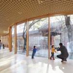 The new building forms a “floating roof” that connects a variety of independent spaces in unity, while making people feel as if they have entered a whole new realm. Apart from the red walls and yellow tiles of the Forbidden City, the architecture of Old Beijing is dominated by the blue bricks and grey tiles of hutongs and alleys. MAD’s kindergarten seeks to take people beyond this context, not just of Beijing but even of Earth; to see and imagine the long history in front of them from another time and space.