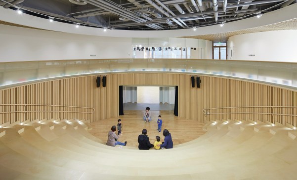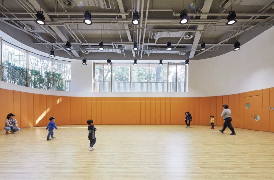 The west side of the lobby leads to a learning area, where a flowing spatial layout creates a free, communal atmosphere, and a unique density and scale. Within the learning area, the different mixed-age learning groups are not separated by closed walls, but by curved walls at regular intervals – originally a supporting structure for the building. The “borderless" learning space, ubiquitous reading environment, and curriculum focusing on learning through exploratory play, not only enriches the interaction between children, but also allows teaching and learning to take place in an optimal atmosphere.