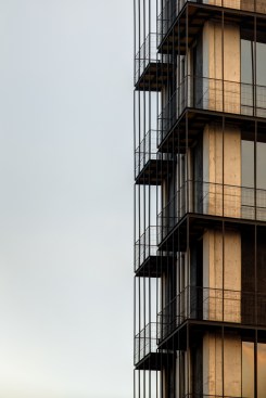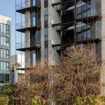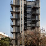 The envisioned design includes a ground floor with immediate access to parting and where the building reception area is located. Each of the vertical levels has a 72 m2 apartment as well as a 19 m2 terrace and balcony. Direct elevator access to each apartment is provided via elevator and included entryway. Additionally, an exterior metal service stairway designed into the facade of the building, providing a unique element to the project.