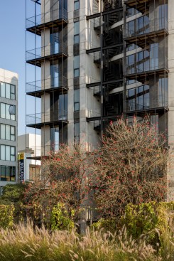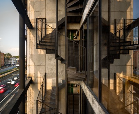 The design seeks to highlight the verticality and slenderness of the building, emphasizing a concrete monolithic design, where the color and texture of each element represent the total essence of the building. A set of two-tone concrete gussets included in the design generate a sense of dynamism and integration based on the penetration from the exterior façade to the interior areas. Additionally, multi-media materials provide contrasting colors and sensations with wood integrated into the gussets, providing warmth and comfort to interior spaces. Each of the elements, such as the vertical lines on the balconies and the staircase, add to the verticality of the building and the monolithic concept for the project. All of the selected materials that will compose the building are timeless and will naturally age according to their inherent nature.