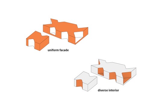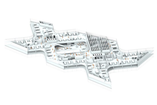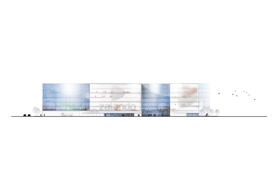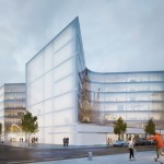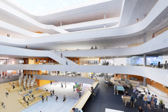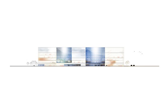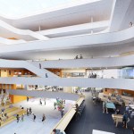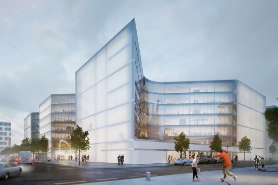 The new Zalando Headquarters is designed as an ensemble of two new buildings that form the heart of the corporate campus in Berlin-Friedrichshain. The project’s two seven-story buildings provide some 42,000 m² of office space. Up to 2,700 employees will work here for Europe’s largest online supplier of shoes and fashion goods. Instead of the company’s various departments being spread out in annexes all over the city, they will now be brought together in a new location in the immediate vicinity of the Mercedes Benz Arena. With a striking design that will project the company’s corporate identity in the cityscape, HENN emerged as the winner in an invited competition. The building’s shape in plan reinterprets the typical Berlin block-edge development. It rotates the building grid diagonally to the development plan and places the internal courtyards on the outer edges of the plots. This opening creates transitions between office and public space. Further views into and out of the building are ensured by the combination of transparent and translucent facades that express the diversity of the company to the world outside. The vertical atrium in the main building opens into a space extending to the full height of the building and directs daylight down to the public areas on the ground floor. The central lobby is flanked by a bank of steps with seating and lounge areas, which can also be used for exhibitions and similar events. The auditorium and the conference and training zones connect to a café and the company restaurant. The spatial organisation of the office with separate zones for work requiring intensive concentration and interaction on the above-ground floors specifically focuses on providing for the changing requirements of the employees and differentiated use options. Special areas for social interaction with integrated kitchens are grouped around the atrium. Open stairways shorten the routes between these common areas on individual floors. The work zones can be flexibly reconfigured for changing team sizes. The main areas for project work are placed centrally in “neighbourhoods”. From this interactive core, the working atmosphere of the other use areas gradually changes to peaceful concentration and withdrawal zones to suit everyone. “Catwalks” connect the individual neighborhoods, allowing space for informal meetings and strengthening the multidisciplinary character of the working day at Zalando.