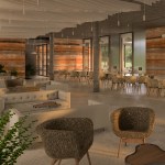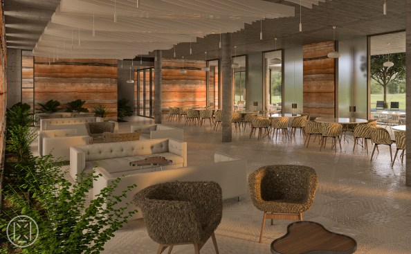 The expressive textures of the rammed earth walls give the space both a warm and cooling atmosphere linking it to the earth and the leafy natural surroundings.