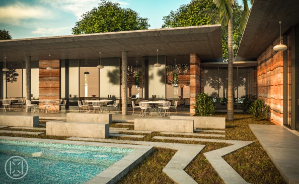 Designed primarily for the apartment dwellers, the club house is open to all residents and guests and comprises of 3 function areas. The main mass contains the entertainment area and lounges and the small mass contains services like restrooms, the kitchen with its storage room and a dining/lounge area. The main attraction of the club house is the pool and its landscaped surroundings, with its randomly elevated concrete benches extracted from the pathways going around the site offering glorious views towards the hilly scenery.