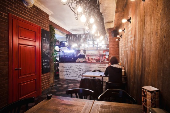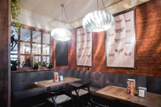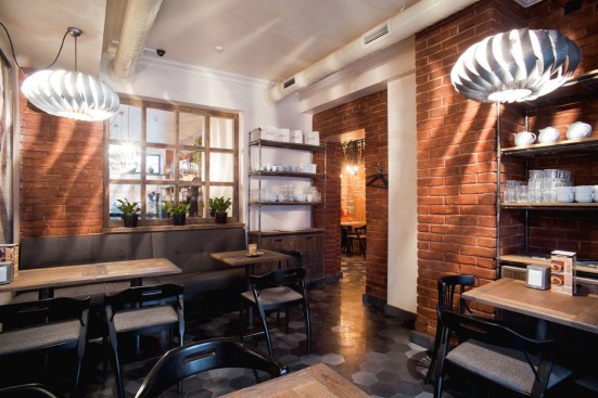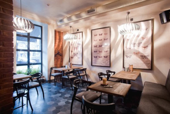 “Zappa” is a little café located on the groundfloor at the place of a former apartment. The last one was replanned, window and door openings were modified. The designers had to create a public space within a very limited area, so it was accurately zoned with an attention to all the details.