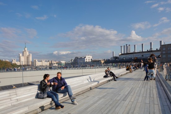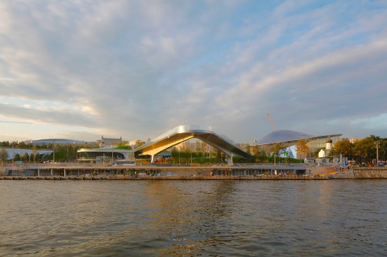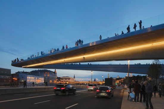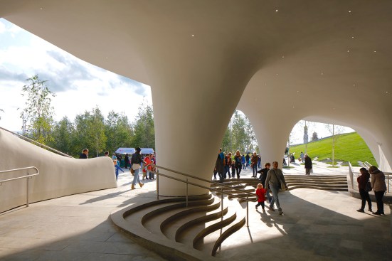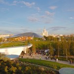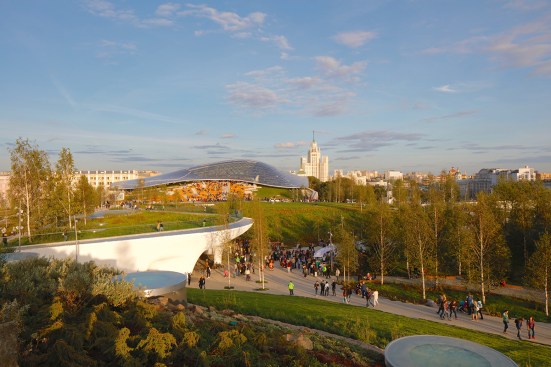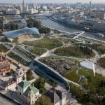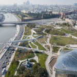 During last week’s Moscow City Day festivities, Zaryadye Park celebrated substantial completion of the 35-acre park with a civic ceremony that opened major portions of the park to locals as construction continues. The park—which features an overlook cantilevering 70 meters over Moscow River, five pavilions, two amphitheaters and a philharmonic concert hall—is scheduled to reach full completion this fall. Centrally located, steps away from St. Basil’s Cathedral, Red Square and the Kremlin, Zaryadye Park will be the first large-scale park to open in Moscow in the past fifty years. In 2012, the City of Moscow and Chief Architect Sergey Kuznetsov organized an international design competition to transform this historically commercial territory into a public park. A design consortium led by Diller Scofidio + Renfro (DS+R) in partnership with Hagreaves Associates and Citymakers was selected out of ninety submissions representing 27 different countries.