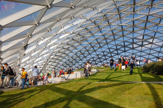 Mary Margaret Jones, a senior principal and president at Hargreaves Associates, described the firm’s approach to Zaryadye Park, commenting, “Our ambition was for this central park in Moscow to express itself as a national park for Russia at large. The site’s natural slope lent itself to a physical palette that samples Russia’s distinct regional landscapes: tundra, steppe, forest and wetland forest.” Each landscape zone utilizes its strategic location to optimize views and exposure, while the natural slope facilitates storm-water management across the site. The horticulture of each zone evokes its regional landscape but does so with plantings that have proven to thrive in Moscow’s climate.
