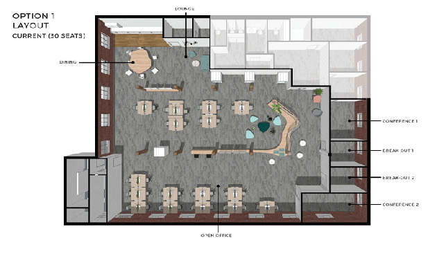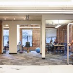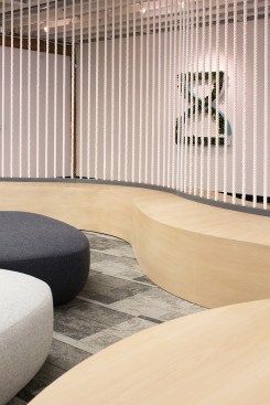 Zenrez, a technology company who provides customers with a booking system for fitness and yoga studios, came to us for a design that was simple, yet sophisticated, seeking a minimalist, cutting edge and bold language. The company’s curvy hourglass logo, which takes cues from the human body, was an early inspiration for designing the space – a historic building in downtown San Francisco characterized by heavy timber wood beams and brick exterior walls.