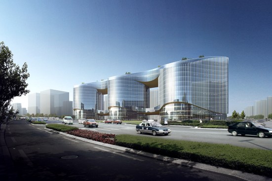 Zhenghong Property Air Harbour Office Project, designed by Aedas, comprises three interconnecting office buildings in Zhengzhou, the provincial capital of Henan Province and a major transportation hub in central China.