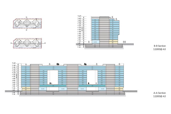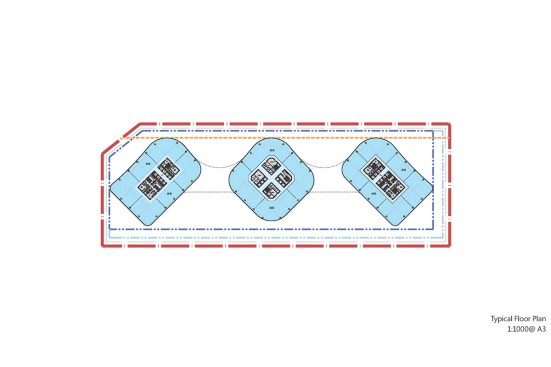 The design scheme delivers a straight forward solution by laying three office blocks along a narrow site, catering to government, corporate tenants and the client. The blocks are connected by shared facilities and rooftop terraces to deliver three-dimensional vertical urban spaces.