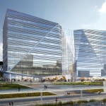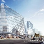 The project is located in the central area of Zheng Dong New District, Zhengzhou City, Hubei Province, mainly functioning as financial office. It is 3.5 km away from the CBD center of Zhengzhou and 1.5 km from the sub center, North Longhu. On the east, the Subway is under construction and on the west, Ruyi river provides the site with splendid view. The north and south sides are planning roads between blocks. The design aims at the contradiction between public and private, office and entertainment. We split the functions into two towers with a huge public sunlight atrium and wrap the two towers and atrium as a whole with diamond-shaped curtain wall. The glass atrium can contain all sort of public activities and will impress visitors a lot. Offices and related functions such as stores, canteen, conference center, activity rooms are placed in two towers which have access control to guarantee privacy. Platforms hanged in the atrium keep communication between two towers.