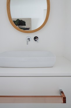 To do that, the first step was shifting the kitchen along the corridor to extend the hallway, squeezing the circulation farther up until the living area, where the space opens horizontally and welcomes the bay.