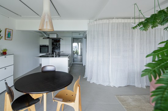 This renovated apartment for a married couple is part of a housing complex located on the coast of Zushi, facing the Sagami Bay in the Kanagawa Prefecture, Japan.
