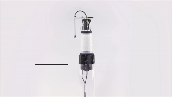 Along with a central body containing electronics and a driver, each Fiberbot had an inflatable silicone membrane to serve as a cylindrical mandrel. An integrated rotational winding arm would wrap a fiberglass thread, wet with photocurable resin and drawn from an on-grade storage system, starting at the mandrel’s base and then move up, like a continuous application of papier-mâché. When the Fiberbot completed a 90-millimeter-long segment, the mandrel would then deflate, detaching the robot from the tubular shell and allowing the robot to crawl up and begin wrapping the next segment. Each tube was 100 millimeters in diameter, a width determined by how much the mandrel was inflated.