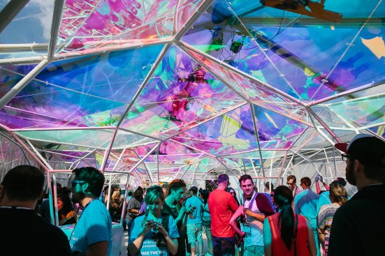 and ad agency BBDO to create the outdoor structure, which was displayed in Austin, Texas’ Brush Square park from March 13 to 15. The pavilion’s frame doubled as