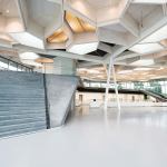 The cell structure provided “a kind of pixelated surface that we could code in different ways,” Barkow explains. Working with Matthias Schuler, a sustainable-energy engineer and an adjunct professor at Harvard’s Graduate School of Design, the design team determined the function of each cell in the ceiling. The strategy proved so efficient, Barkow notes, “we actually ended up closing up some skylight cells to save on costs.”