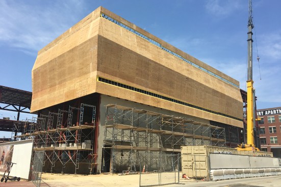 Upon entering the museum, visitors are directed to the topmost floor, where most of the exhibitions are located. Holsinger says Omniplan and exhibition designers Berenbaum Jacobs Associates wanted visitors to have a sense of ascension—not only physically but also of “your knowledge and your awareness rising.” On the exterior, the building’s copper cladding mirrors this journey. One proud facet in the copper traces a path upward from the northeast corner of the building; to exaggerate the sense of movement created by this facet, the staggered, different-sized copper sheets hang at an angle, following the facet’s path.