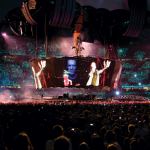 The screen concept was developed by Williams, Fisher, Innovative Designs’ Frederic Opsomer, and Hoberman Associates’ Chuck Hoberman. Opsomer has been a pioneer in large-format video screens, Davis explains, but the scale of this project was larger than any of them had worked on. The challenge was to create a moving screen that was truly visible from all parts of the stadiums booked for the tour, while providing high-resolution visuals for the thousands of concertgoers who, after all, are there to see the band.