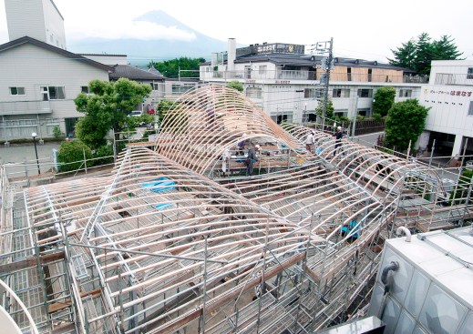 As one might expect with so many structural connections, a number of adjustments had to be made on site during construction. “It didn’t really go as we imagined,” Takashige says. Several of the steel gusset plates were welded at the wrong angle and had to be bent into place to achieve the roof’s curve. Takashige describes the process as both “ironic and interesting,” given how much time had been spent on 3D modeling. Takashige admits that despite the extra work, he enjoyed the process. It gave him a sense of satisfaction, he says, working directly with the wood as does a furniture maker.