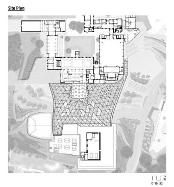 With its design for an undulating geodesic dome roof, London-based Wilkinson Eyre Architects turned an underutilized infill space into the social and academic heart of the University of Exeter’s Streatham Campus. The 37,674-square-foot, free-form, timber grid shell—one of the largest in the United Kingdom—covers a 96,875-square-foot area called the Forum, which ties together the Great Hall Piazza, student guild, library, and other academic facilities with cafés, a shop, and a bank along a galleried “high street.” The soaring ceiling of oak-clad spruce timber shelters the Forum from South West England’s wet climate and floods it with natural light, thanks to a mix of glass and ETFE (ethylene tetrafluoroethylene) panels.