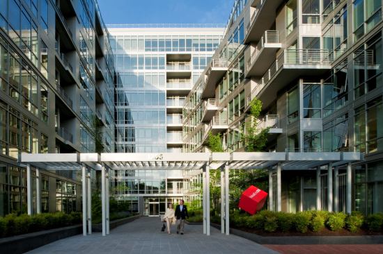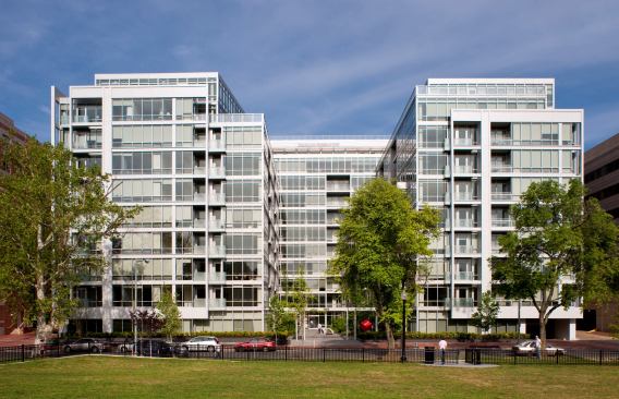 This luxury apartment complex near Georgetown and Dupont Circle encompasses eco-minded and transit-oriented options, including multiple recycling areas, abundant bike racks, and preferred parking for low-emitting and fuel-efficient vehicles.