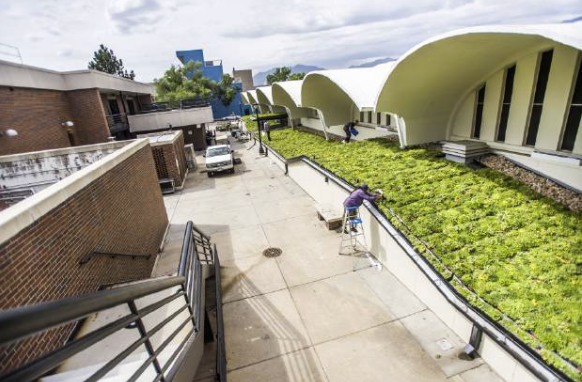 The Honnen Ice Arena at Colorado College recently got a roof covering of living plants, a choice that college officials say will pay off in a variety of ways. In addition to reducing storm water runoff, the 13,000 sedums planted in trays atop the arena will lower noise levels inside, help insulate the building and help clean the air.