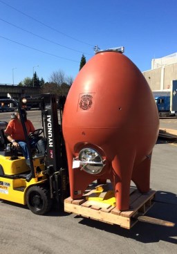 The company says that concrete stabilizes the temperature of whatever is inside of it. This stability makes for a smooth and gradual fermentation, because there are no temperature spikes to make the yeast become aggressive.