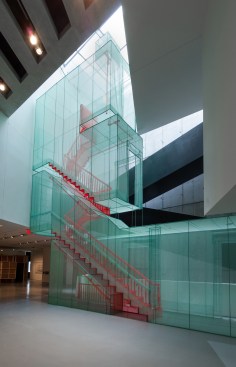 What most intrigues me about Suh’s works is the uncanny relationship between the precision of representation and the transformation of atmosphere. Such fanatical attention to architectural detail might be expected in the process of making an exact replica—and regarding physical dimensions, this appears to be the case. Yet the obvious transliteration into a light-transmitting material creates an elusive experience: One can physically inhabit the installations, but their sheer layers and gossamer edges blur in a gauzy visage. This phenomenon evokes Louis Kahn’s oft-cited description of the measurable and immeasurable in architecture: “The design, the making of things, is a measurable act. In fact at that point, you are like physical nature itself because in physical nature everything is measurable. … But what is unmeasurable is the psychic spirit. The psyche is expressed by feeling and also thought and I believe will always be unmeasurable.”