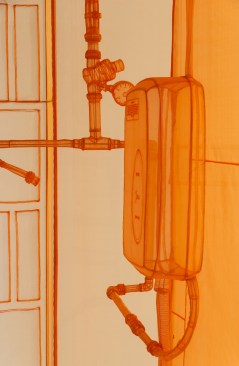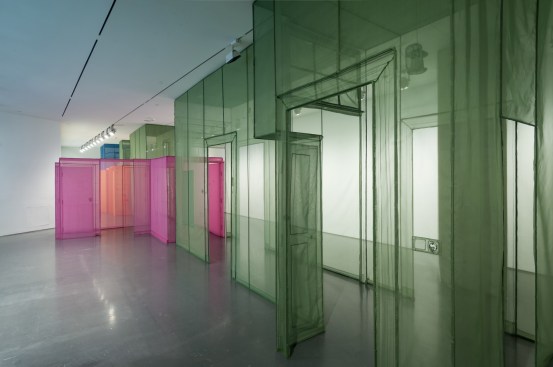 The experiential potency of Suh’s architectural remembrances springs from their ability to channel this “unmeasurable” quality effectively. A visitor can occupy these spaces and feel their intimate presence, yet the insubstantial constructions are composed of almost nothing—the extreme minimum of materials required to recreate these environments. Like the transient life Suh has led in multiple cities, these installations are as exhilarating in their intricate memorializing of a temporarily rooted existence as they are disquieting in their spectral manifestation of it. Perhaps after the original constructions are gone, Suh’s recreations will live on—the apparitional artifacts of lost architectural memories.