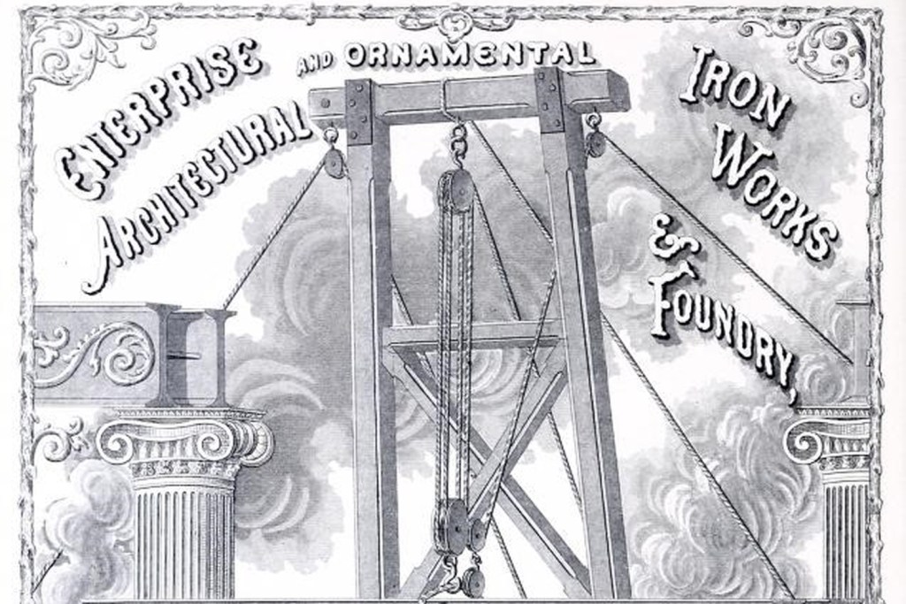 St. Louis has several cast iron foundries. The Enterprise Architectural Iron Works was true to its name, producing architectural cast iron components such as columns, fronts, stairs, ornamental railings, and fences.