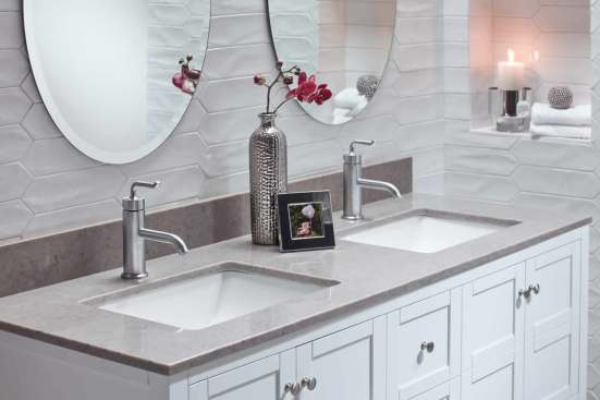 Other ways to add personal touches include bold accent pieces, interesting artwork and unique countertops. Vanities created with natural quartz and stone ensure no two surfaces are exactly alike.