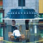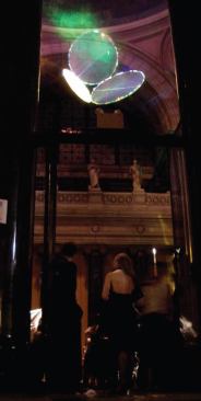 The vast space was temporally yet appreciably altered through a negligible footprint that weighed less than 60 pounds, used no additional electrical power, required no installation construction, and fit within the party budget. As a result, for a brief moment—a single evening—an atmosphere of delight, where lightwaves are amplified through reflection and refraction, was successfully and artistically created.