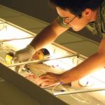 This table, commissioned for the dinner reception following the A|L Light & Architecture Design Awards Roundtable Discussion, held annually at Parsons the New School for Design in New York City, is a completely independent and extra curricular activity for students in the lighting design program. To pursue the table idea, students embarked on a two-week-long design/build charrette. “We wanted to explore individual settings that come together as whole,” explains team leader Meghan Smith-Campbell. Knowing that the table is used for an event that seeks to bring students and design professionals together to encourage dialogue, the students used the idea of the individual setting as a metaphor for the table. “Everyone has a place in the profession, but each is unique,” Smith-Campbell says. That being said the table had to accommodate 30 people, and the challenge for the students was creating an element that would appear singular but could be constructed in sections. The table’s final measurements were 24-feet-long by 4-feet-wide.