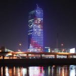 The 435-foot-tall building is highly visible as it is connected to Philadelphia’s 30th Street Station and those traveling between New York City and Washington, D.C., can see it from the train. Hennes says the building owners became excited about the lighting schemes’ possibilities through the use of LEDs because not only was color an option, but the technology also allows for patterns or effects on the façade. To create a wallpaper of light that wraps the building, CBBLD used 26W RGB LED fixtures that are concealed in shadow boxes behind the glass curtain wall. “The glass has a reflective quality, so by day you can’t see those shadow boxes,” Hennes says. “By night, of course, the fixtures activate the surface.”