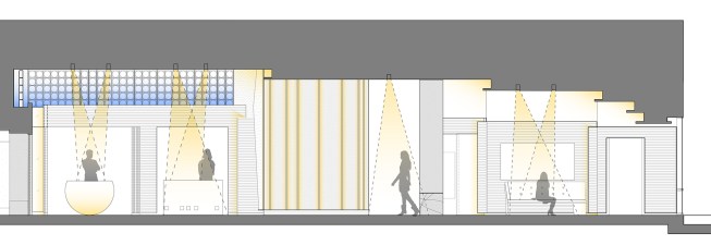 The space in question, the reception desk and lounge area of the Hyatt Herald Square, at West 31st Street, (it had a soft opening in September 2014 and its grand opening in March 2015) which had been severed from the daylight-filled entrance by an 18-foot-wide elevator core that occupied the middle of the lobby’s 32-foot-wide floor plate. Darkening it further were 10-foot ceilings at the entrance and two enclosed staircases on either side. From the moment she saw the space, Peiheng Tsai, who founded PHT Lighting Design in 2006, knew that lighting would play a leading role in stitching the two halves of the lobby back together.