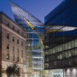 Rogers’ first foray in the nation’s capital—300 New Jersey Avenue—takes two older limestone and brick buildings and turns them into a trio. The three buildings triangulate around a new 12,000-square-foot Rogers’-designed glass atrium that soars a full seven stories, which Moran’s firm, D.C.-based MCLA, was hired to light.