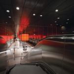 Despite client–designer difference of opinion, there can be no mistaking HafenCity University subway station as another run-of-the-mill infrastructure project. The interaction between the light—whether white or colored—and the mottled surface of the steel paneling, which is reflective without creating glare, makes for a brooding yet animated experience. In Pfarré’s words, it’s “a breathtaking atmosphere.”