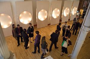 As part of Motorlight’s U.S. launch at the Pomegranate Gallery (above) during ICFF, Dyson teamed with interactive light artist Jason Bruges to create the installation Focal Shift, a series of six birch plywood wall panels approximately 3 feet wide and 10 feet high, housing six concealed Motorlight Wall fixtures. With only the light and beam angles visible across the wood surface, gallery visitors watched a dynamic play of light and shadow. Offering a different kind of illumination and user interface, Motorlight gives new meaning to interactive design.