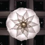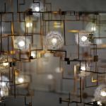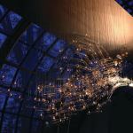 Another Studio Drift work that is currently gaining momentum is Flylight. Originally commissioned in 2007, the piece was shown outside of the Netherlands for the first time in 2011 at the Salone del Mobile in Milan. It is currently being customized for private houses and public spaces in Europe and the Middle East. Flylight was inspired by flocks of birds and the patterns they make as they twist through the sky, interacting with one another. The installation is composed of as many as 180 hand-blown glass tubes suspended from cables and outfitted with halogen lamps. The tubes also house ultrasonic sensors that measure the distance between themselves and viewers, transmitting this information to a computer program that drives the electronics controlling the lights. Each tube responds individually to the movement of people in the room, and the overall installation is programmed not to repeat selected patterns, making it truly interactive.
