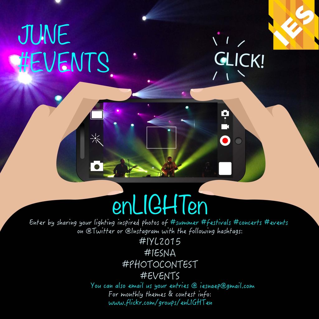Share lighting-inspired photos addressing the subjects of #water and #light on @Twitter or @Instagram with the following hashtags: #IYL2015, #IESNA, #PHOTOCONTEST, and # EVENTS.