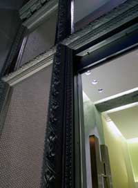 The classical fa?ade, however, is not illuminated, owing to restrictions by the Landmarks Department. ‘I guess there are too many over-lighted buildings in San Francisco,’ says Harbick. ‘But,’ he adds, ‘we were able to get away with a little.’ Ingrade lights, planted in the threshold, distinguish the residential entrance from the adjacent commercial entrance. Some of this light washes over, illuminating the scrolls and columns of the fa?ade.